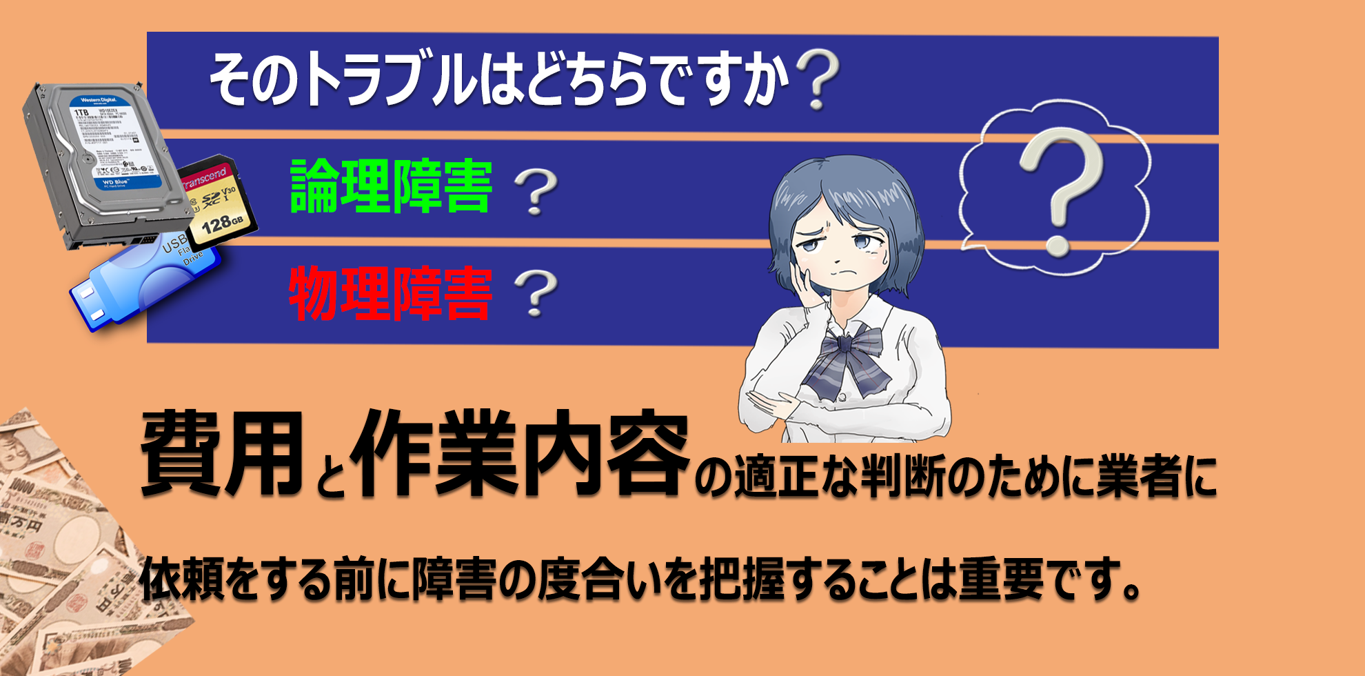 データ復旧の最初の第一歩は、そのトラブルが「論理障害」と「物理障害」のどちらであるかを判断することです。