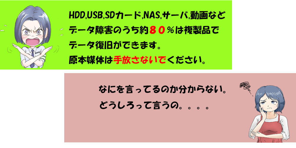 | 回答 | 媒体の原本ではなくてもデータ復旧ができます |